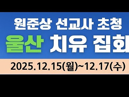 치유집회 25년 12월 15-17일(월,수) 강사: 원준상 선교사 울산 세계로기도원 250명 선착순 접수 댓…